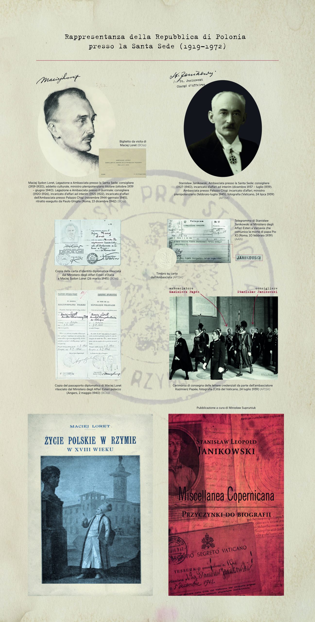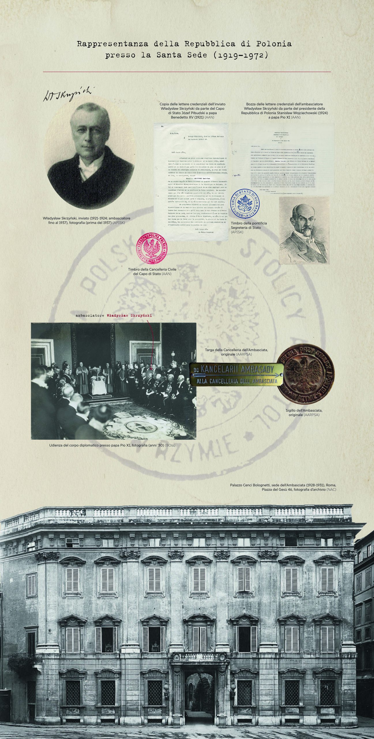 Ekspozycja została przygotowana we współpracy Stacji PAN z Instytutem Historycznym Uniwersytetu Szczecińskiego. Składa się z dwóch części. Pierwsza jest poświęcona polskim dyplomatom akredytowanym we Włoszech w latach 1919-1945. Jej autorem jest historyk, prof. Henryk Walczak z Uniwersytetu Szczecińskiego. Autorem części poświęconej polskim dyplomatom akredytowanym przy Stolicy Apostolskiej w latach 1919-1972 jest historyk i dyplomata, dr Wojciech Biliński, radca Ambasady Rzeczypospolitej Polskiej przy Stolicy Apostolskiej w latach 1994-1998. Obaj naukowcy wygłosili referaty wprowadzające.